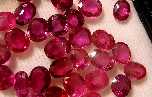 Ruby 9Ruby is gem quality corundum that may be any color of red depending on the chromium and iron content of the stone. Generally, ruby is quite durable. Still, rubies are subject to chipping and fractures if handled roughly. Rubies are found worldwide. The finest stones are from Myanmar. Bright red stones are mined in: Afganistan, Pakistan, Vietnam. Brownish-red rubies are from Thailand. Darker stones are generally produced from the mines in Australia, India, Russia and USA (Georgia, North Carolina, Wyoming, Montana, North Carolina, and South Carolina.). Recently ruby deposits have been discovered in Greenland. Prices are determined by color. The brightest red rubies called pigeon blood red, are more valuable than other rubies of similar quality. Red spinel is often mistaken as rubies by people lacking experience. Fine red spinels may approach the average ruby in value. |